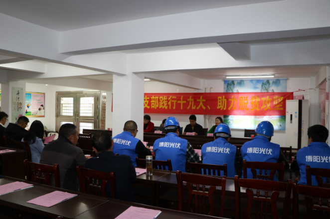 11月26日下午,由六安博陽(yáng)太陽(yáng)能發(fā)電工程有限公司黨支部組織的踐行十九大、助力脫貧攻堅(jiān)行動(dòng)暨光伏電站維護(hù)現(xiàn)場(chǎng)教學(xué)培訓(xùn)會(huì)在平橋鄉(xiāng)新店村村委會(huì)順利召開(kāi),平橋鄉(xiāng)黨委副書(shū)記吳童、平橋鄉(xiāng)副鄉(xiāng)長(zhǎng)謝靜、新店村書(shū)記劉自根、博陽(yáng)光伏行政總監(jiān)周照峰等相關(guān)領(lǐng)導(dǎo)出席此次活動(dòng)。